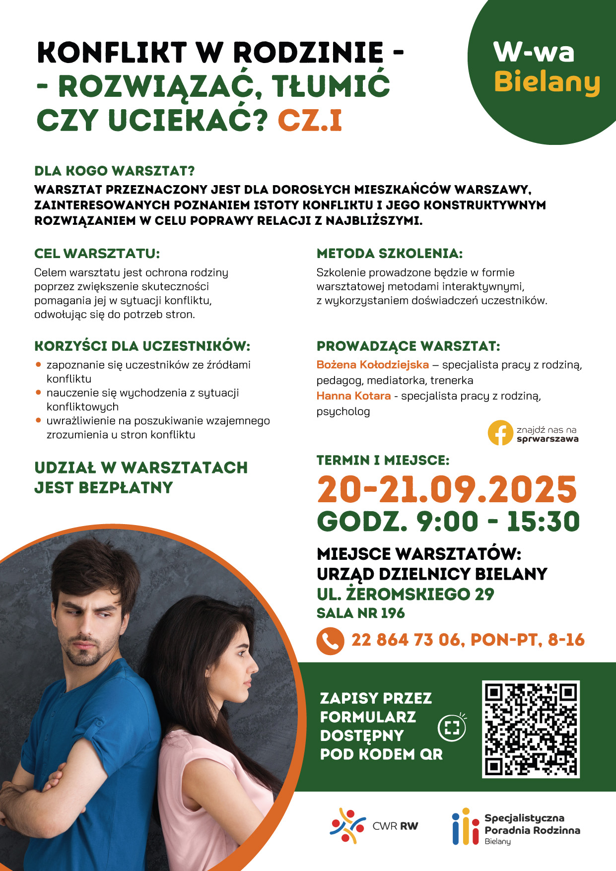 https://centrumwspieraniarodzin.pl/ Zapraszamy do udziału w bezpłatnych warsztatach - "Konflikt w rodzinie".