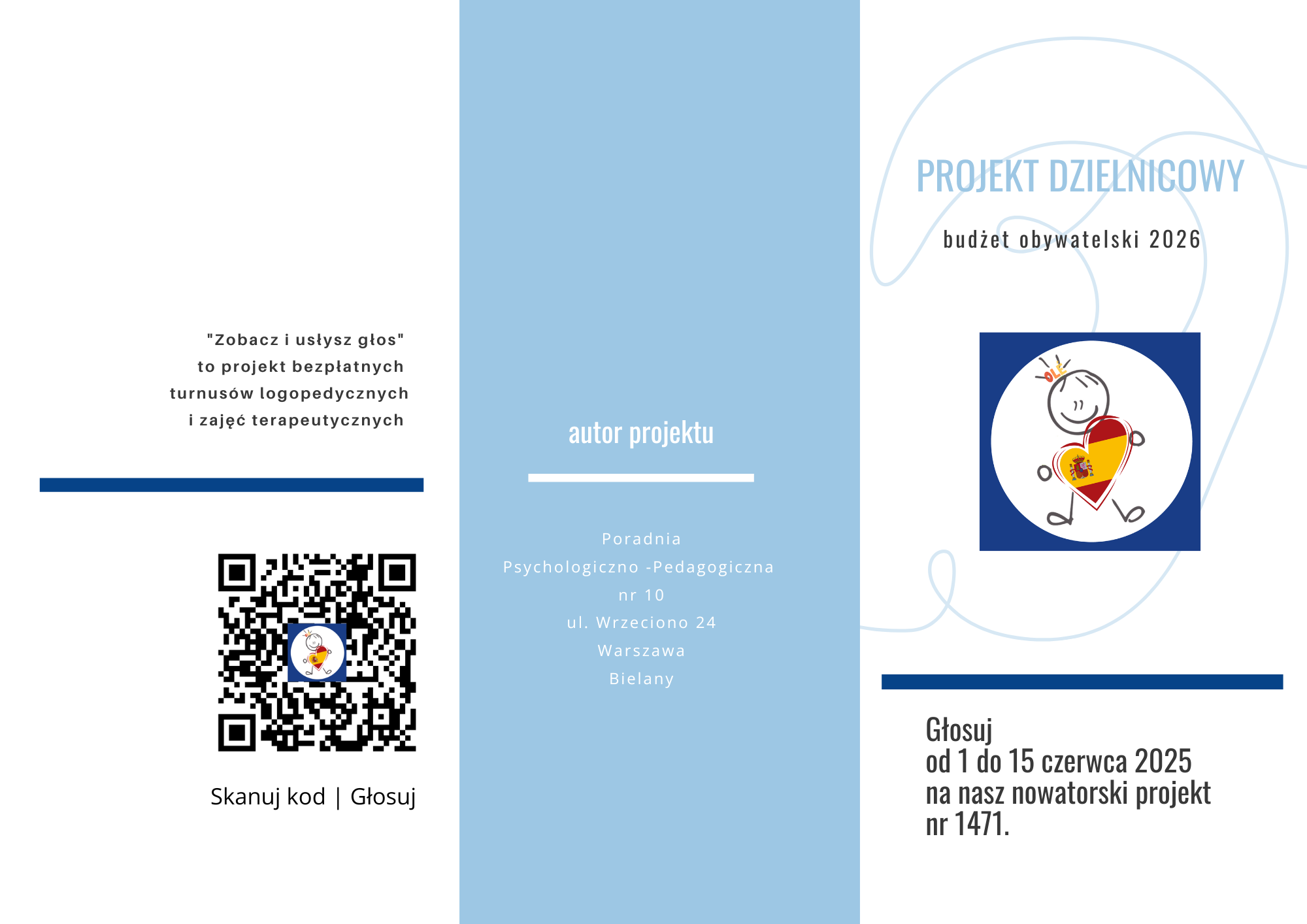 Nasz projekt do budżetu obywatelskiego został dopuszczony do glosowania! Teraz wszystko w Waszych rękach, a raczej głosach. Liczymy na Was my i nasi podopieczni! Projekt „Zobacz i usłysz głos” został zgłoszony do głosowania w warszawskim Budżecie Obywatelskim. Dzięki Państwa głosom możliwe będzie bezpłatne wsparcie dzieci z Bielan z problemami rozwojowymi – poprzez specjalistyczne turnusy terapeutyczne oraz całoroczne zajęcia indywidualne i grupowe z użyciem nowoczesnego sprzętu (audiometru, słuchawek ForBrain, tablicy interaktywnej).