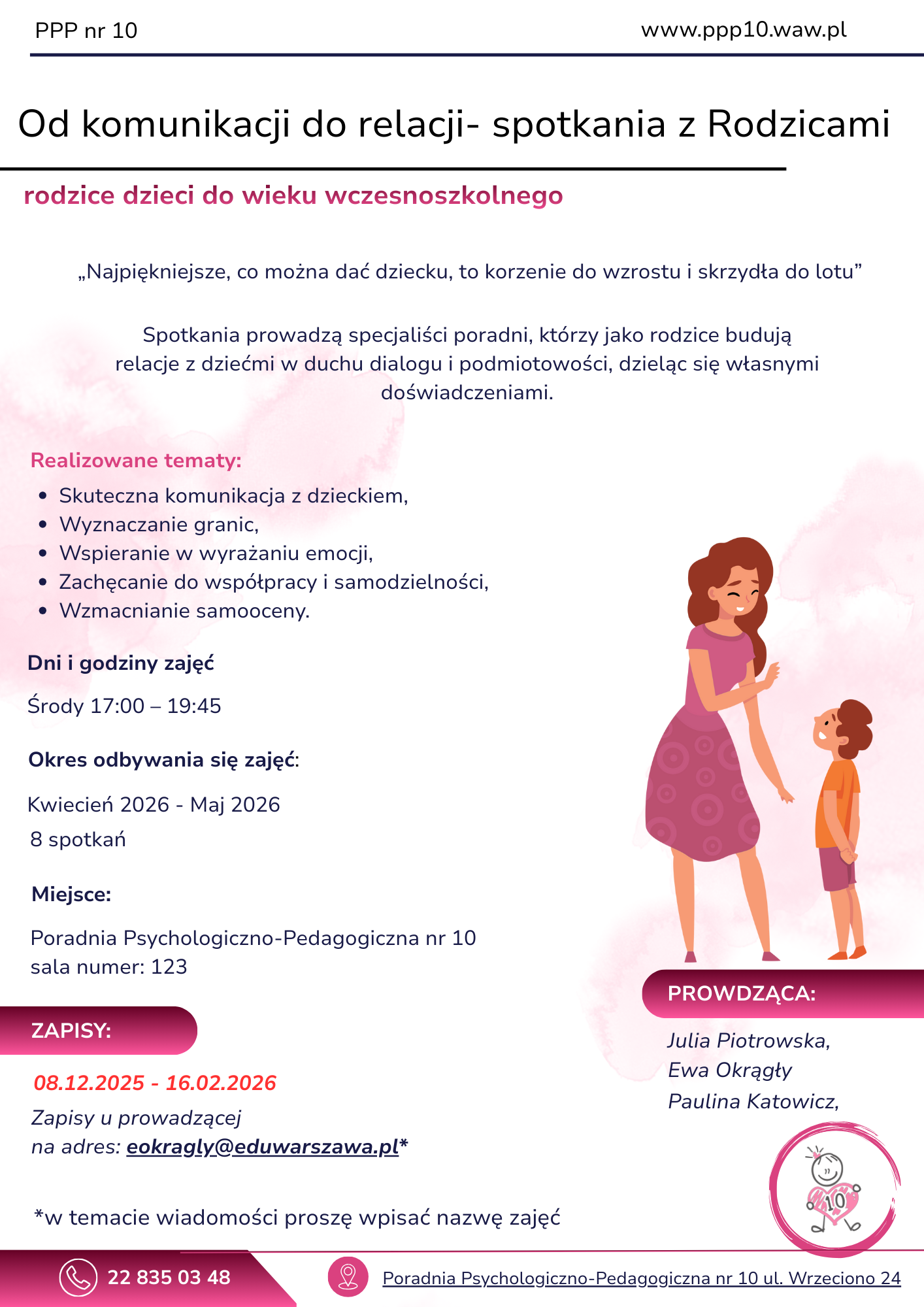 Wypełnioną kartę zgłoszeniową (dostępna poniżej) należy złożyć w recepcji lub przesłać na adres sekretariat.ppp10@eduwarszawa.pl